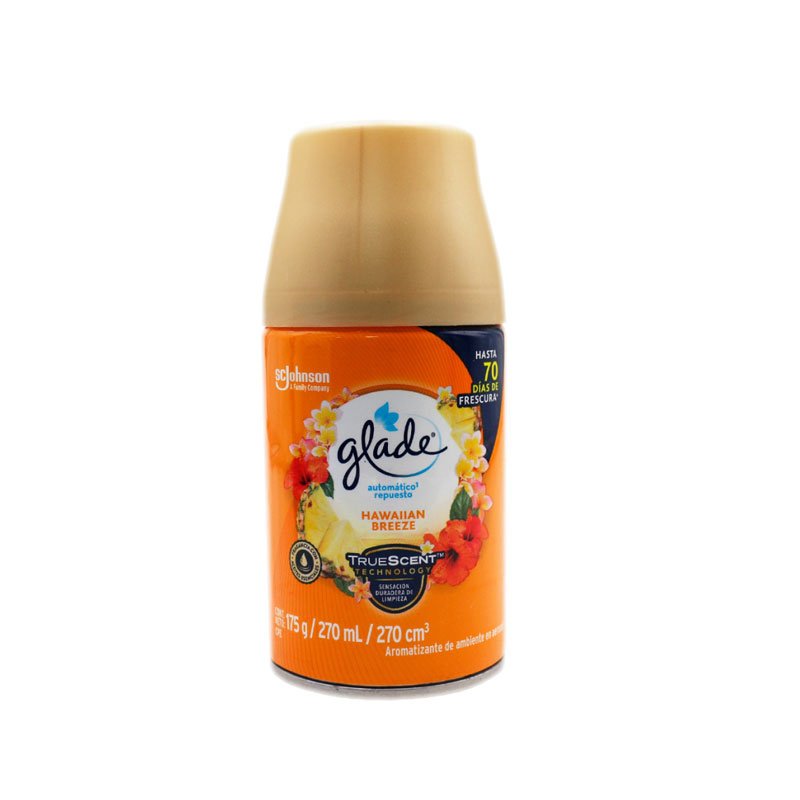 El Aroma Glade repuesto aerosol 240 ml Perfumatic renueva el perfume de tus ambientes de manera rápida y duradera. Disponible en diferentes aromas, elimina malos olores y mantiene hogares, oficinas y espacios comerciales frescos y acogedores. Su presentación en aerosol facilita la reposición y asegura una difusión uniforme, creando ambientes agradables en todo momento.