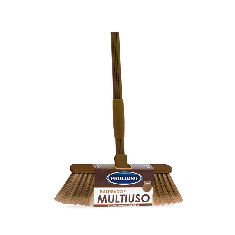 La escoba multiuso baldeador extendible Prolimso facilita la limpieza de pisos y superficies en hogares, oficinas y locales comerciales. Su diseño extendible permite ajustar la longitud para mayor comodidad, mientras que sus cerdas resistentes arrastran polvo, suciedad y líquidos con facilidad. Ideal para limpieza rápida, eficiente y versátil en todo tipo de ambientes.